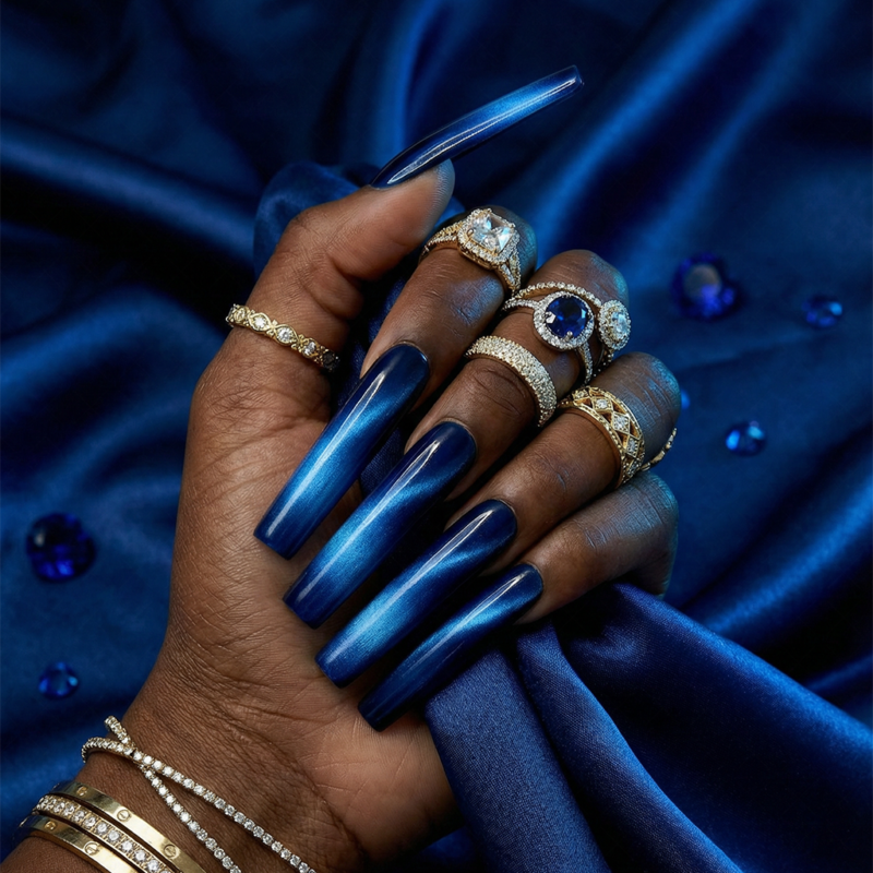 Cat Eye Chrome – Multi-Color Long Square Press-Ons with Magnetic Cat Eye Finish